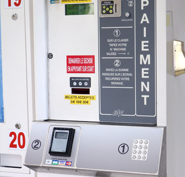Distributeur pièce avec rendu-monnaie, Laverie self-service automatique avenue Simon Bolivar 75019 Paris Centrale de paiement